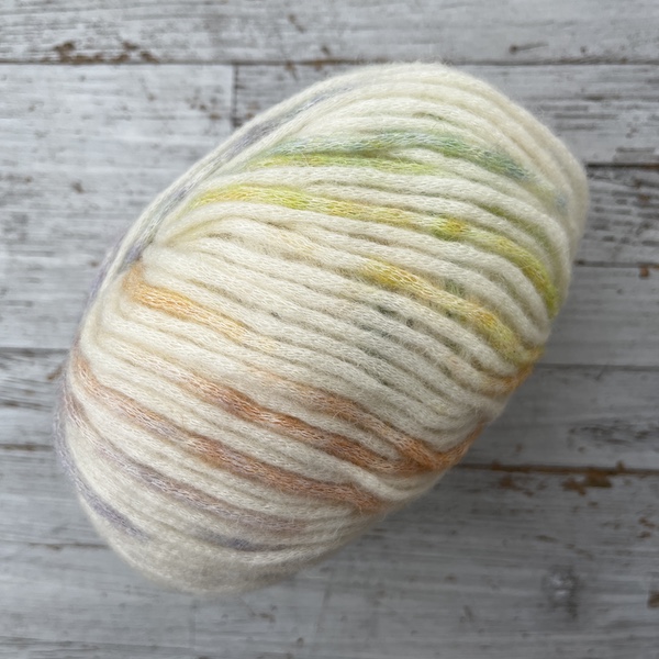 Seine Farbwelt ist wie ein leises Spiel aus Tönen, die sich immer wieder zärtlich wiederholen. Ein feiner, cremefarbener Faden durchzieht das Garn und lässt einen sanften, harmonischen Farbverlauf entstehen – wie Licht, das weich über eine Landschaft wandert. Jedes Knäuel wirkt dadurch lebendig und zugleich wunderbar ruhig. Ein Garn, das man gern berührt, gern verarbeitet und noch viel lieber trägt.