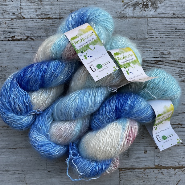 Immer wieder sehr beliebt sind unsere >>>Limited Edition<<< von der Garnmanufaktur Herzfasern. Diese Sonderfärbungen werden nur einmal gefärbt – streng limitiert. – gefärbt auf HERZFASER NO. 50 – LIEBLING, die leidenschaftliche Ménange-à-trois aus edler Seide, feinstem Mohair und ein wenig Kunstgarn. Gerade so viel, dass diese extra-leichte Beziehung stabil genug für die schönsten Entwürfe ist.