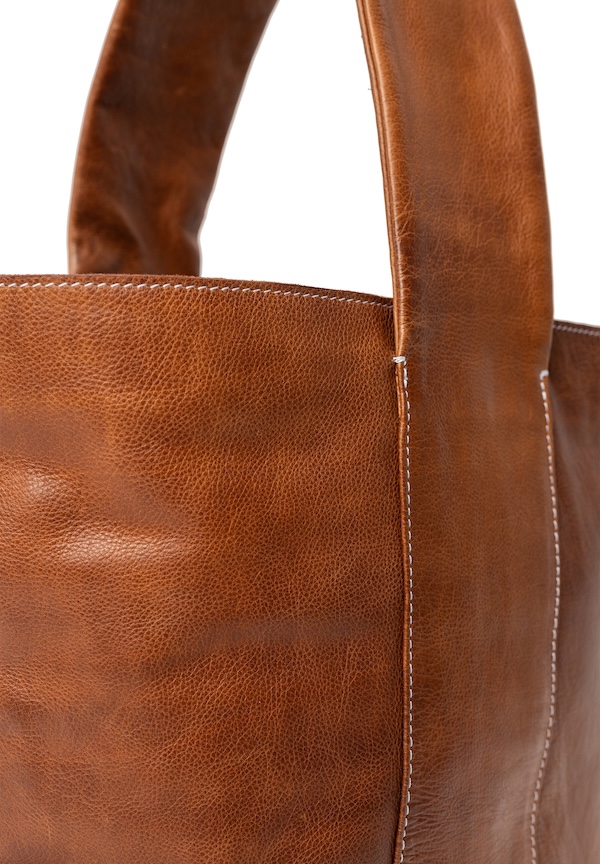 Das offene Hauptfach und der komfortable Tragegriff machen sie unkompliziert und leicht zugänglich. Gefertigt aus weichem Urban Leather mit natürlicher Struktur und sanfter Wachsschicht – jede Tasche ein Unikat.